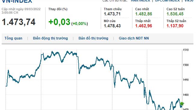 * Phiên giao dịch chiều 9/3/2022: VN-Index nhích tăng 0,03 điểm