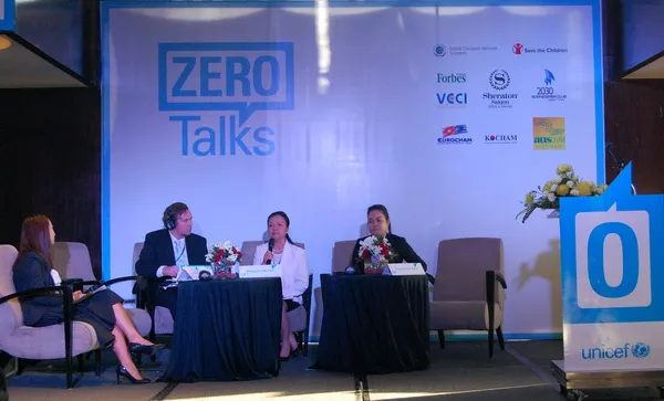 Đại diện doanh nghiệp thảo luận về chủ đề Doanh nghiệp cần hành động vì trẻ em ra sao - Ảnh: Lê Nguyễn
