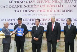 Tại buổi lễ, ông Lê Hoàng Quân, Chủ tịch UBND TP đã trao 5 giấy chứng nhận đầu tư cho 4 doanh nghiệp FDI: Công ty trách nhiệm hữu hạn Ngôi nhà Đức, công ty Freetrend Industrial của Hồng Kông - Trung Quốc; công ty Aeon, công ty Nikken của Nhật Bản; với tổng vốn đầu tư trên 220 triệu USD. Dù thời gian gần đây có một số diễn biến không thuận lợi nhưng việc thu hút đầu tư nước ngoài của thành phố Hồ Chí Minh vẫn đạt được sự tăng trưởng cao. Tính từ đầu năm đến nay, tổng số dự án có vốn đầu tư nước ngoài được cấp mới giấy chứng nhận đầu tư là 169 dự án với tổng vốn gần 970 triệu USD, đạt 423% so cùng kỳ năm 2013.