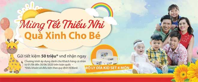 Cụ thể, từ ngày 01/06/2020 đến 30/06/2020, HDBank dành tặng bộ sản phẩm Kid Donghwa gồm: 01 tô soup hai quai, 01 tô soup, 01 đĩa vuông, 01 ly sữa baby cho tất cả khách hàng gửi tiết kiệm tại HDBank từ 50 triệu trở lên.