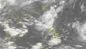 Ảnh mây vệ tinh vị trí của áp thấp, cách Đài Loan khoảng 120km về phía Nam