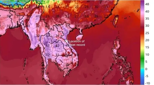 Tại Thái Lan, khu vực phía bắc, trung và đông bắc nhiệt độ lên tới 39-44 độ C. Tại Campuchia, nhiệt độ dao động từ 36-39 độ C.