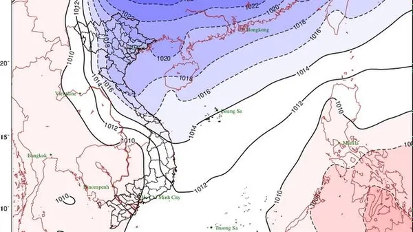 Theo Trung tâm Dự báo khí tượng thủy văn quốc gia, hiện nay (14/1), bộ phận không khí lạnh mạnh đã báo vẫn đang tiếp tục di chuyển xuống phía Nam. Dự báo từ gần sáng ngày mai (15/1/2023), bộ phận không khí lạnh này sẽ ảnh hưởng đến Bắc Bộ, sau đó ảnh hưởng đến Bắc và Trung Trung Bộ. Gió trong đất liền chuyển hướng Đông Bắc mạnh dần lên cấp 3, vùng ven biển cấp 4-5, giật cấp 6-7.