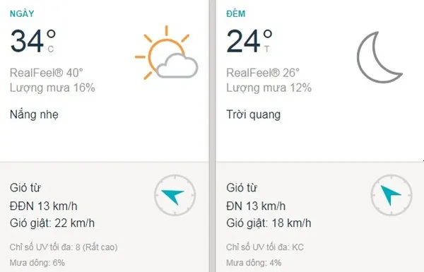 - Buổi sáng và trưa trời nắng, gió nhẹ. Chỉ số UV rất cao - ở mức 8 vào lúc 12 giờ trưa.