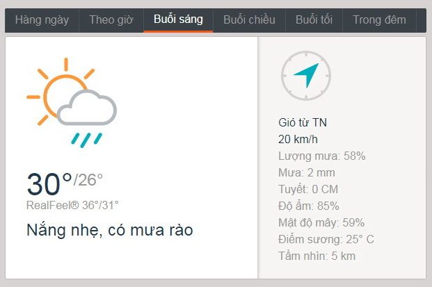- Nhiệt độ buổi sáng trong khoảng 26-30 độ C. Lượng tia UV cao nhất ở mức 10. Độ ẩm 79-93%