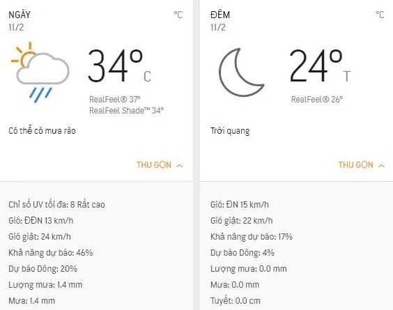 - Nhiệt độ tại TPHCM buổi tối và đêm nay (11/2) dao động trong khoảng 28 - 30 độ C.
