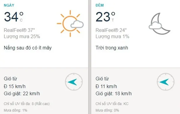 - Buổi chiều trời nắng mạnh hơn. Nhiệt độ ngoài trời cao nhất khoảng 37 độ C vào lúc 14 giờ.