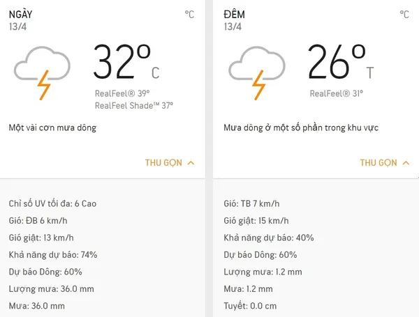 - Nhiệt độ tại TPHCM buổi tối và đêm nay (13/4) dao động trong khoảng 27-28 độ C.