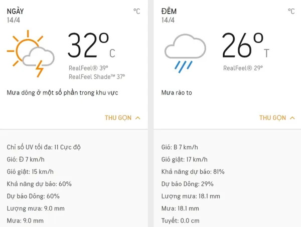 - Chiều nay (14/4), nhiệt độ tại TPHCM dao động từ 27-32 độ C.