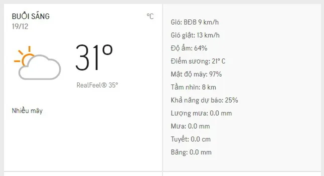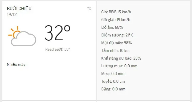 - Chiều ngày 19/12, trời tiếp tục nhiều mây đến cuối giờ.