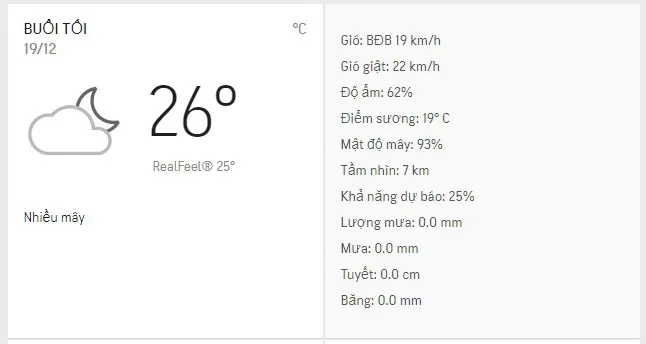 - Tối ngày 19/12 TPHCM nhiều mây. Không mưa.