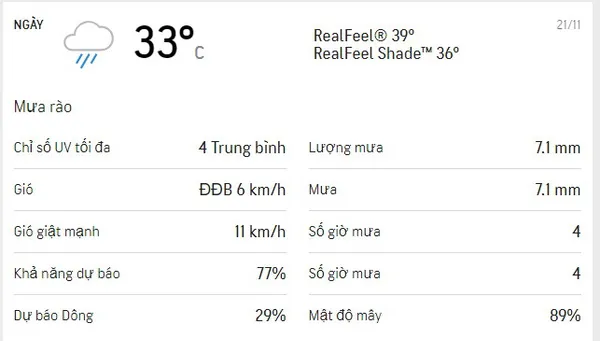 Nhiệt độ buổi sáng trong khoảng 25-33 độ C. Lượng tia UV ở mức 4.