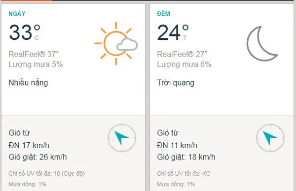 - Gió vận tốc 11-18km/h, hướng Đông-Đông Nam. Độ ẩm 45-83%