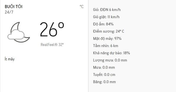 - Buổi tối và đêm nay (24/7) nhiệt độ tại TPHCM khoảng 27 - 29 độ C.