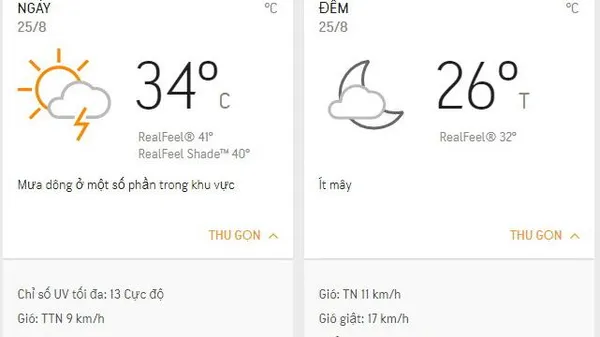 - Chiều ngày 25/08, trời tiếp tục có nắng đến cuối giờ.