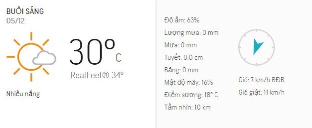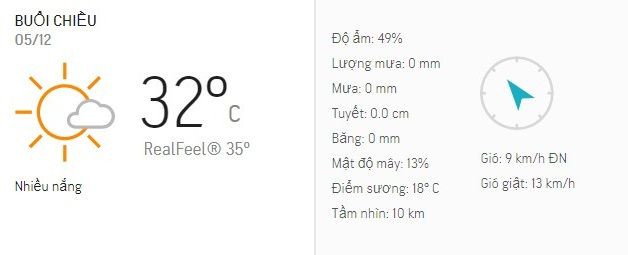 - Chiều nay (5/12), nhiệt độ tại TPHCM dao động từ 30 - 32 độ C.