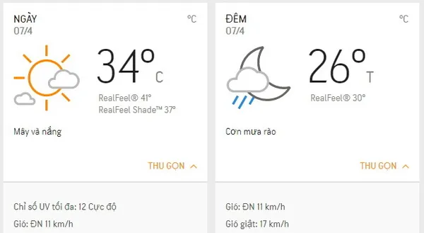 Chiều 7/4 trời có nắng, sau 14 giờ nhiệt độ giảm dần (Nguồn: Accuweather)