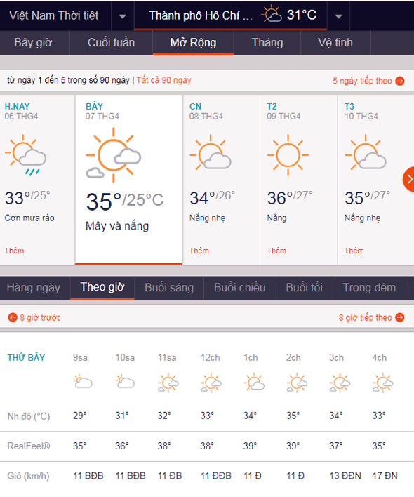 Ngày mai, TPHCM trời khô ráo. Nguồn: Accuweather