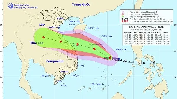 Dự báo trong 24 giờ tới, bão di chuyển theo hướng Tây Tây Bắc, mỗi giờ đi được khoảng 15km và có khả năng mạnh thêm. Đến 22 giờ ngày 17/9, vị trí tâm bão ở khoảng 15,4 độ Vĩ Bắc; 112,5 độ Kinh Đông, trên khu vực phía Nam quần đảo Hoàng Sa, cách bờ biển các tỉnh Quảng Bình-Quảng Ngãi khoảng 440km về phía Đông Nam. Sức gió mạnh nhất vùng gần tâm bão mạnh cấp 11 (100-115km/giờ), giật cấp 13.