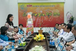 | Chủ tịch HĐND thành phố Nguyễn Thị Quyết Tâm chúc Tết Đài TNND TPHCM tối ngày 30.1. Ảnh: K.Huân |