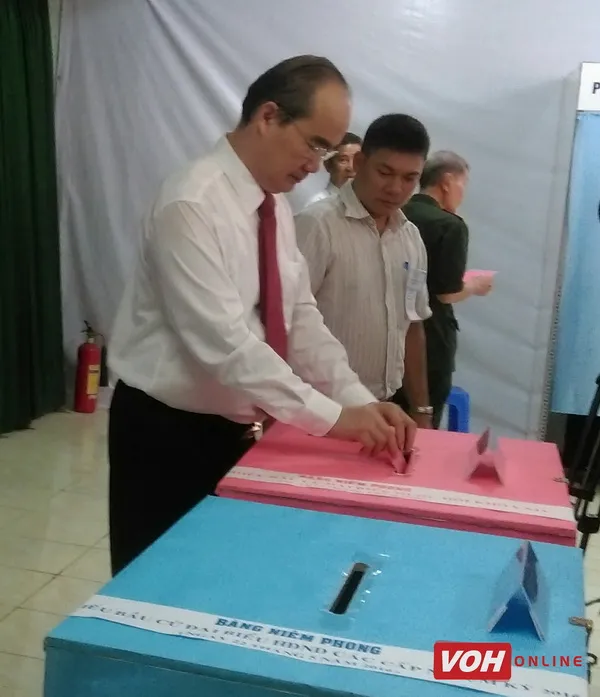 Sau khi thực hiện quyền công dân, đồng chí Nguyễn Thiện Nhân đến kiểm tra công tác bầu cử tại hai địa điểm 39 Trần Quốc Thảo phường 7 quận 3 và 68 Nguyễn Công Trứ phường Nguyễn Thái Bình quận 1.