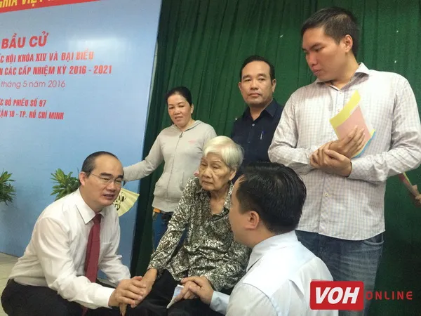 Đồng chí Nguyễn Thiện Nhân thăm hỏi cử tri lớn tuổi đi bầu cử