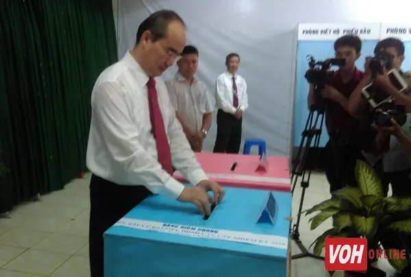Đồng chí Nguyễn Thiện Nhân bỏ phiếu bầu, thực hiện quyền công dân