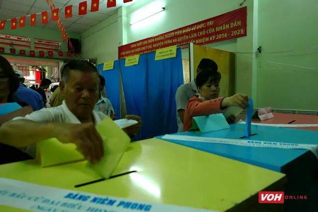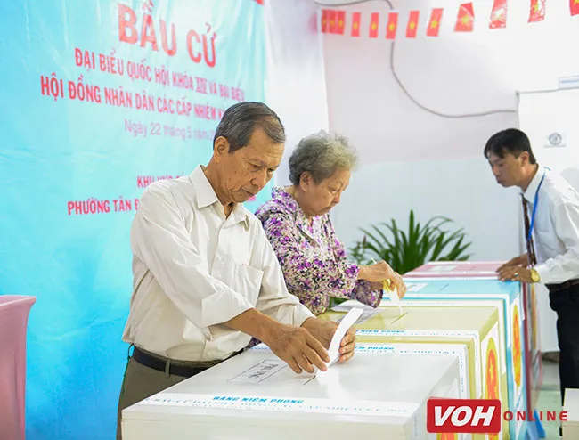 Cử tri bỏ phiếu bầu đại biểu Quốc hội khóa XIV và HĐND các cấp nhiệm kỳ 2016-2021 tại điểm bầu cử số 7, P.Tân Định, Q.1, TPHCM (Ảnh: Khiêm Huân)
