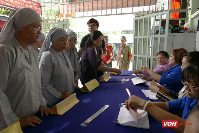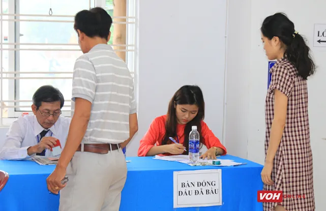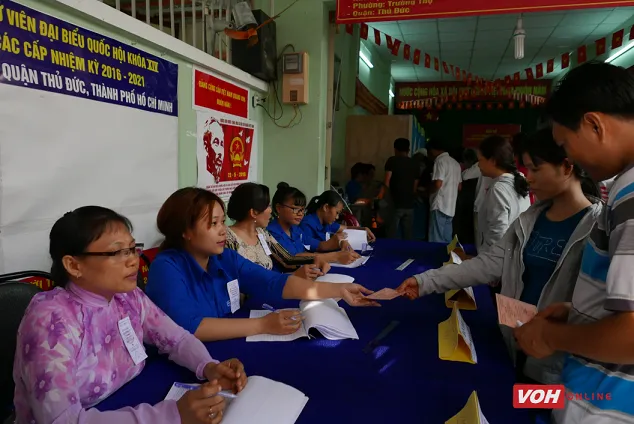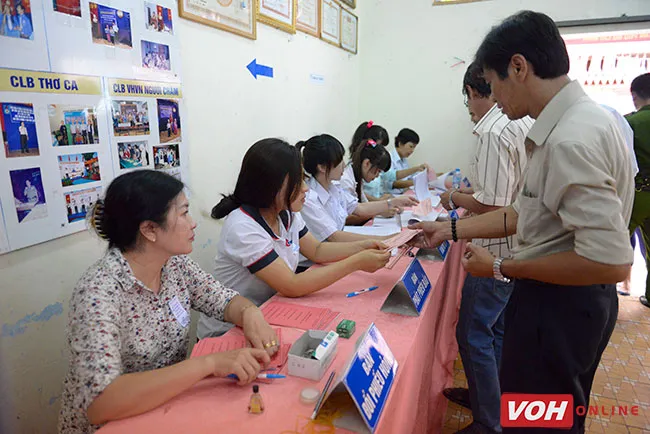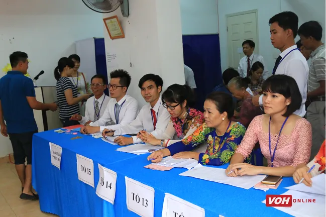 Cử tri đăng ký lấy phiếu bầu tại điểm bầu cử 109, P.17, Q.Bình Thạnh, TPHCM (Ảnh: Khiêm Huân)