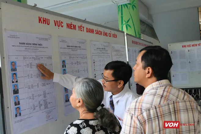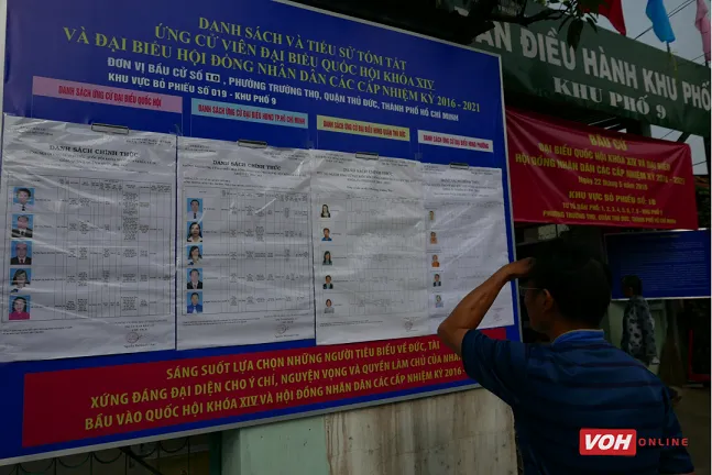 Cân nhắc lựa chọn ứng cử viên tiêu biểu về đức, tài trước khi bỏ phiếu Đơn vị bầu cử số 10, P. Trường Thọ, Q. Thủ Đức, TPHCM (Ảnh: Lan Hương)