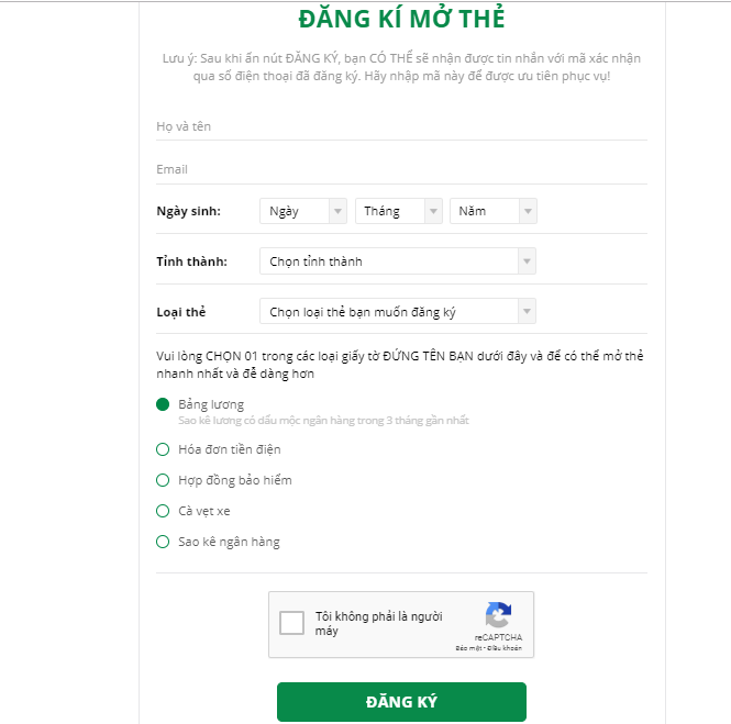 - Bước 3: nhân viên tư vấn liên hệ thu hồ sơ. Chỉ cần bạn chuẩn bị đầy đủ giấy tờ, bạn sẽ được nhân viên tư vấn hẹn gặp để ký vào đơn đề nghị mở thẻ.
