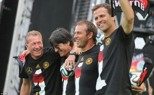 HLV Joachim Loew, trợ lý Andreas Koepke, Hansi Flick và quản lý Oliver