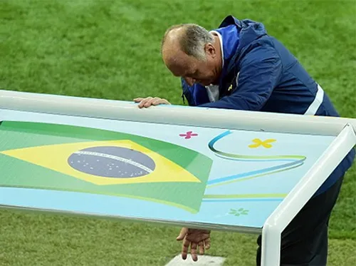 Huấn luyện viên Scolari không thể nhìn vào sân dù sau đó Oscar đã có bàn danh dự