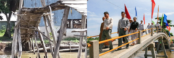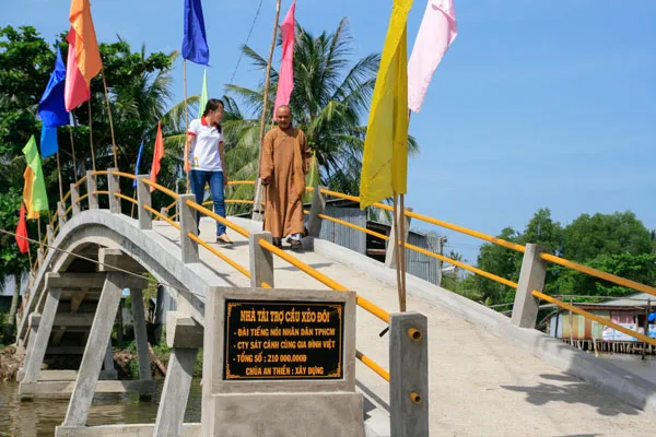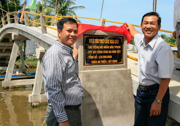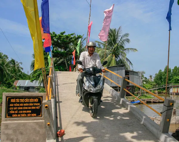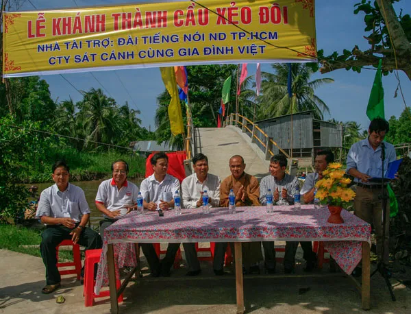 | Cây cầu Xẻo Đôi với kinh phí 210 triệu đồng do các nhà tài trợ và thính giả của chương trình Sát cánh cùng gia đình Việt đóng góp. |