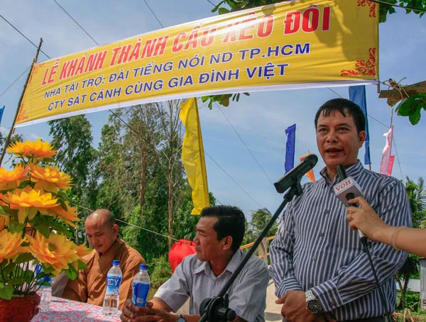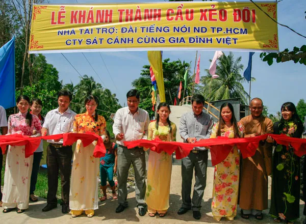(VOH) - Sáng nay (2/8), Đài TNND TPHCM do ông Nguyễn Nam Tuấn - Phó Giám đốc đài TNND TPHCM dẫn đầu đã đến xã Đông Hưng A, huyện An Minh, tỉnh Kiên Giang để khánh thành cây cầu Xẻo Đôi với kinh phí 210 triệu đồng do các nhà tài trợ và thính giả của chương trình Sát cánh cùng gia đình Việt đóng góp.