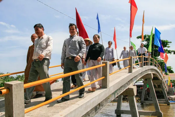 | Đoàn đại biểu cắt băng khánh thành cầu Xẻo Đôi. |