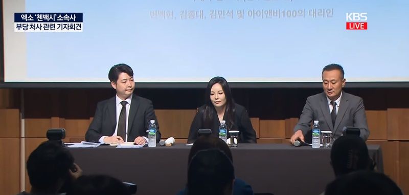 Đúng 4 giờ chiều 10/6 (giờ Hàn Quốc), buổi họp báo của INB100 diễn ra tại khách sạn Shilla (Seoul, Hàn Quốc), phát sóng trực tiếp trên kênh KBS News. 3 thành viên EXO không trực tiếp xuất hiện. Bà Cha Gawon - Chủ tịch ONE HUNDRED (công ty mẹ của INB100), ông Kim Dongjoon - giám đốc đại diện INB100 và luật sư Lee Jaehak đã điều hành buổi họp báo.
