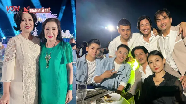 Bên cạnh đó, Hà Trí Quang cùng bạn đời Thanh Đoàn cũng có mặt trong buổi tiệc để chúc mừng cặp uyên ương mới. Nhân dịp hội ngộ đặc biệt, các nghệ sĩ như Lê Phương, Ngọc Thuận, Trung Dũng, Mỹ Uyên, Huy Khánh, Đức Tiến,... đều tranh thủ tạo dáng, chụp ảnh làm kỷ niệm.
