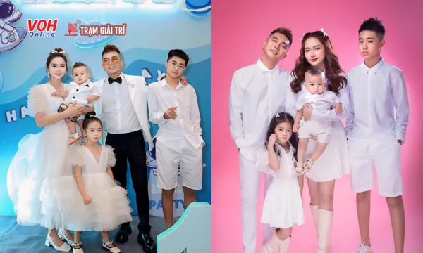Huỳnh Như (vợ Khánh Đơn) bế con trai út Văn Văn trên tay, cậu bé trông kháu khỉnh, đáng yêu được mẹ diện áo quần, tạo kiểu tóc chỉn chu. Cô con gái cưng của cả nhà diện váy trắng, có thiết kế voăn xòe bên dưới, không khác gì nàng công chúa. Còn anh con trai lớn rất điển trai giống ba, ra dáng người lớn.