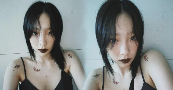 Không dừng lại ở đó, trên story của mình, Taeyeon tiếp tục mê hoặc fan hâm mộ với loạt ảnh mới theo phong cách trang điểm đậm đầy ma mị và quyến rũ. Vẫn là chiếc áo 2 dây khoe khéo những hình xăm đẹp mắt, Taeyeon còn gây ấn tượng với mái tóc sẫm màu và đôi môi đen bầm cá tính. Có lẽ không ai ngờ rằng trưởng nhóm đáng yêu, ngọt ngào của SNSD ngày nào cũng có lúc trở nên quyến rũ bức người như vậy.