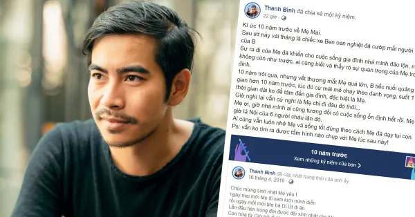 Thanh Bình viết: "Kí ức 10 năm trước về mẹ Mai. Sau status này vài tháng là chiếc xe ben oan nghiệt đã cướp mất người Mẹ vĩ đại của Bình. Sự ra đi của Mẹ đã khiến cho cuộc sống gia đình nhà mình đảo lộn, mọi thứ không còn như trước, ai cũng biết và thấy rõ sự quan trọng của Mẹ trong gia đình. 10 năm trôi qua, nhưng vết thương mất Mẹ quá lớn".