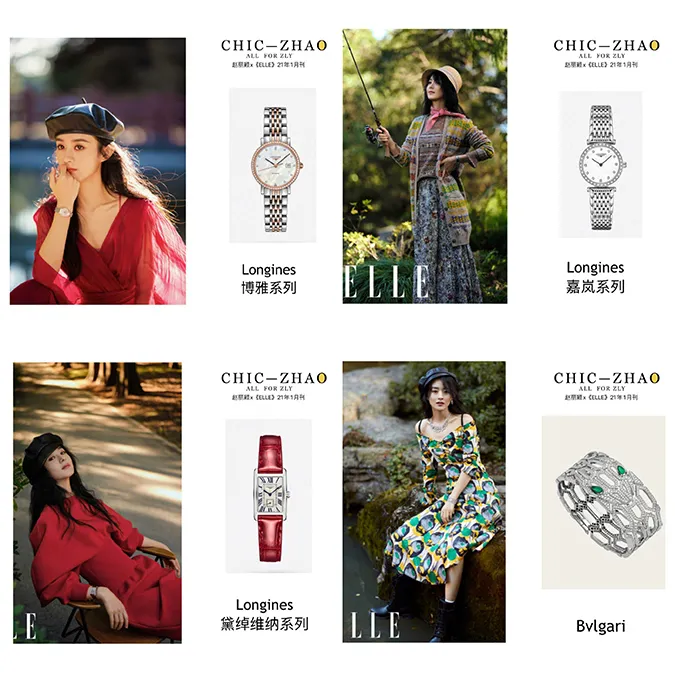 Ngoài DIOR, nhãn hàng do Triệu Lệ Dĩnh làm đại sứ thì trong bộ ảnh lần này của cô nàng còn được tài trợ bởi các nhãn hàng khác do cô làm đại diện như: LONGINES, BVLGARI và NARS.