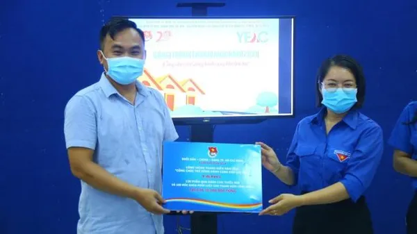 Do tình hình và diễn biến của dịch bệnh Covid-19 hiện nay trên địa bàn Thành phố, các anh chị đoàn viên, Trưởng cụm thi đua 4, Đoàn Sở Văn Hoá Thể Thao đã đến thực hiện trao bảng tượng trưng cho Trung tâm Hỗ trợ Thanh niên Công nhân Thành phố với 120 phần quà dành cho thiếu nhi, 100 phần móc khoa pháp luật cho thanh niên công nhân, tổng trị giá 30.000.000 đồng. Đây là họat động nằm trong công trình thanh niên “Công chức trẻ đồng hành cùng khu lưu trú”.