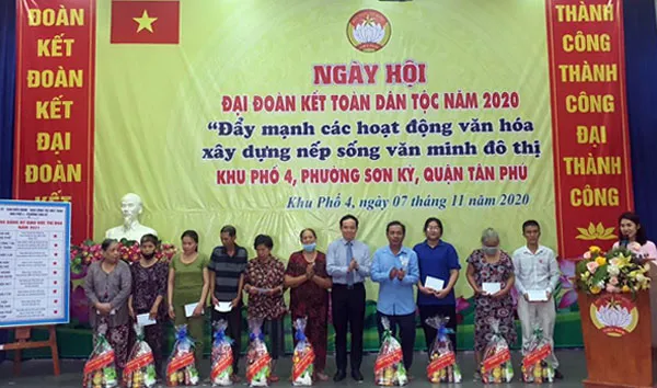 Những ngày này, các khu phố trên địa bàn TPHCM đang tổ chức nhiều hoạt động chào mừng kỷ niệm 90 năm Ngày thành lập Mặt trận Dân tộc thống nhất Việt Nam - Ngày truyền thống Mặt trận Tổ quốc Việt Nam (18/11/1930 – 18/11/2020), trong đó sôi nổi nhất là Ngày hội Đại đoàn kết toàn dân tộc.