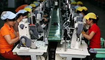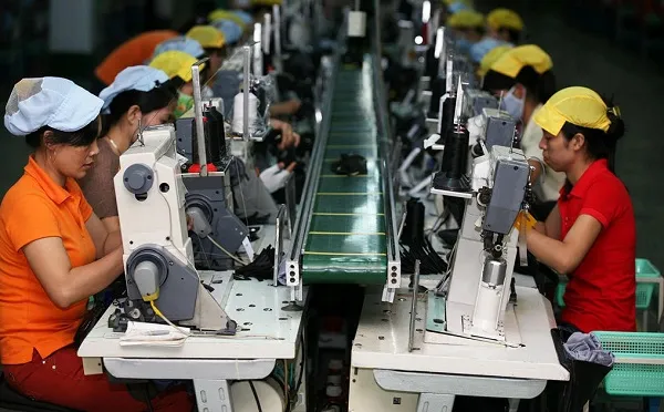 Công nhân của Tập đoàn Pouyuen tại Việt Nam đang sản xuất giày dép.