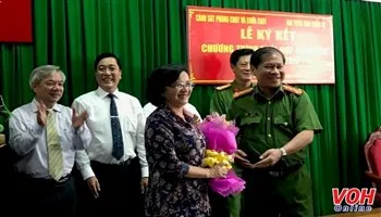 Bà Thân Thị Thư – Ủy viên Ban Thường vụ Thành ủy – Trưởng Ban Tuyên giáo Thành ủy và Đại tá Lê Tấn Bửu, Giám đốc Cảnh sát PCCC TP.HCM đại diện ký kết