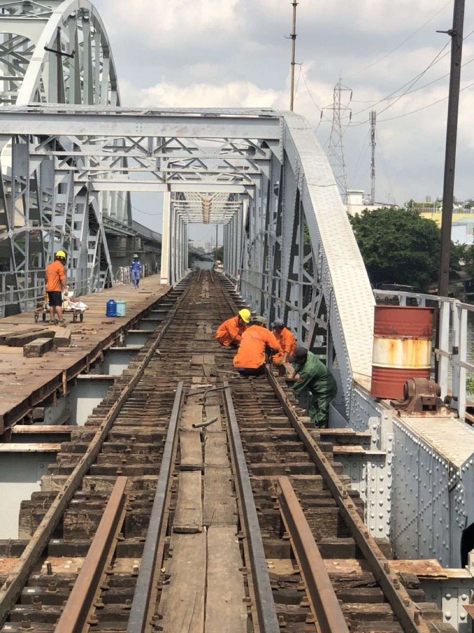Công nhân bắt đầu tháo dỡ các đường ray cầu Bình Lợi - Ảnh: TTO