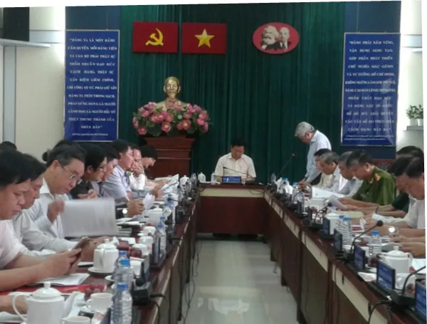 Quang cảnh buổi làm việc của Bí thư Thành ủy Đinh La Thăng với Quận ủy quận 5.