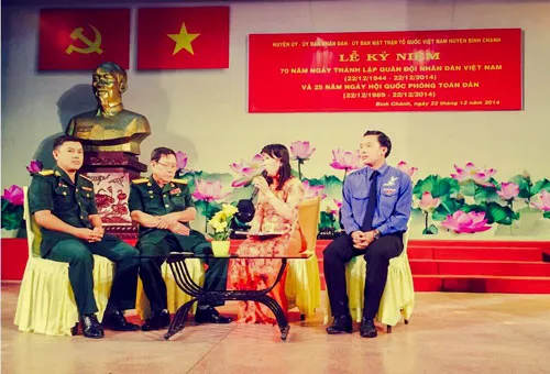 Tại đây, chính quyền cùng người dân huyện đã ôn lại truyền thống hào hùng của Quân đội Nhân dân Việt Nam cũng như ý nghĩa Ngày Hội Quốc phòng toàn dân. Tiếp nối sau đó là buổi giao lưu giữa các cựu chiến binh với đại diện đoàn viên thanh niên tiêu biểu. Nhân dịp này, UBND huyện Bình Chánh cũng trao trả 10 hồ sơ đi B cho thân nhân của cán bộ đi B, đồng thời khen thưởng 1 tập thể và 21 cá nhân có thành tích xuất sắc trong đợt thi đua cao điểm nhân dịp lễ kỷ niệm 70 năm ngày thành lập Quân đội Nhân dân Việt Nam.
