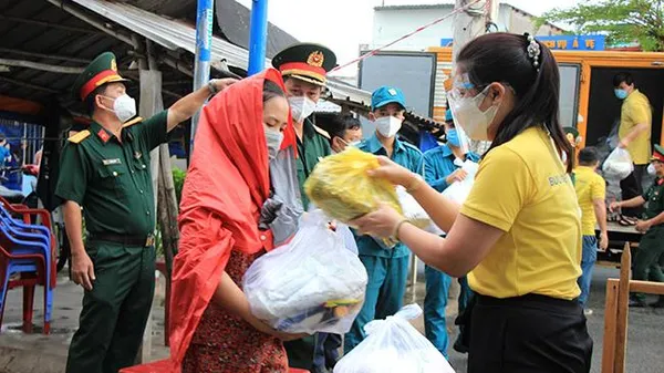 Chiều 17/8, tại quận Bình Tân và Quận 12, Ủy ban mặt trận Việt Nam TP.HCM và Trung tâm An sinh xã hội Thành phố phối hợp tổ chức chương trình “Tấm lòng mùa dịch, san sẻ yêu thương” với tổng trị giá 160 tỷ đồng, nhằm hỗ trợ nhu yếu phẩm, cho người lao động tự do tại TP.HCM. Chương trình do Bộ Thông tin và Truyền thông thực hiện.